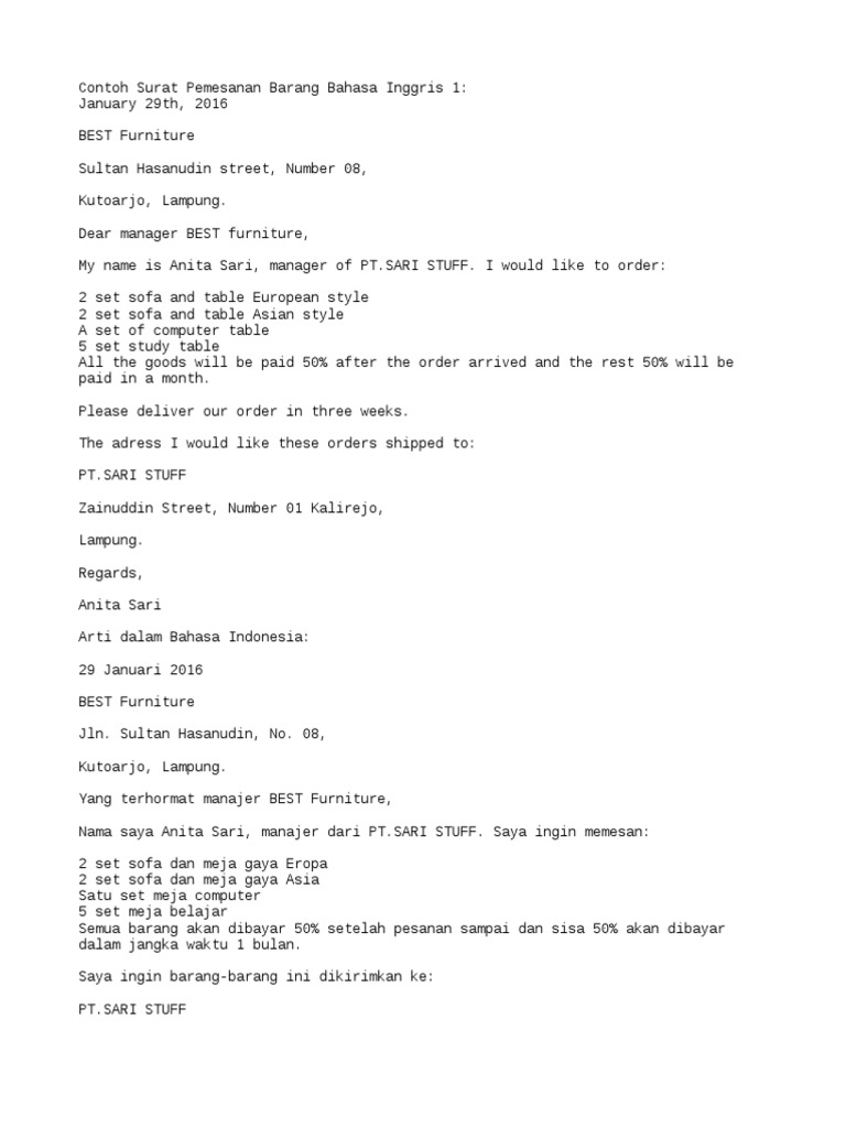 Maybe you would like to learn more about one of these? We did not find results for: By admin may 31, 2021 Contoh surat pesanan barang furniture bentuk semi block style. Contoh surat forniture pt prima nusantara bahasa inggris :